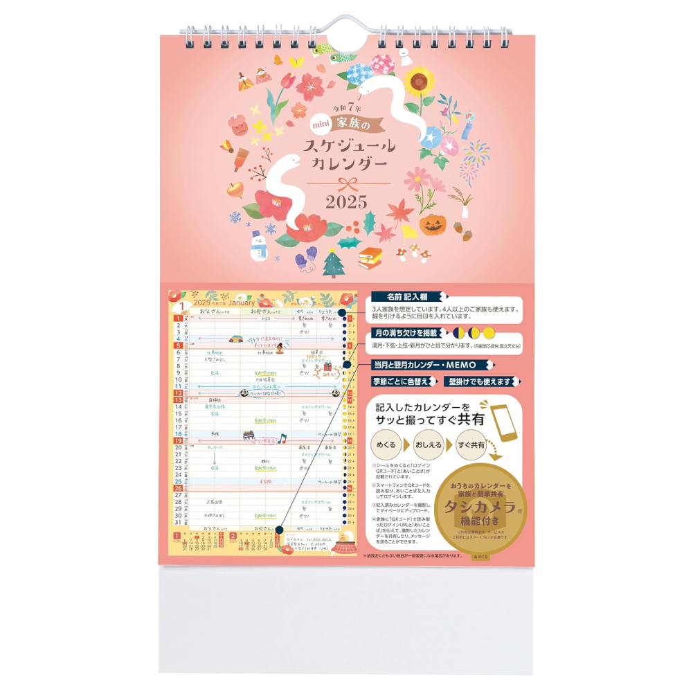 家族のスケジュールカレンダー ミニ版2025