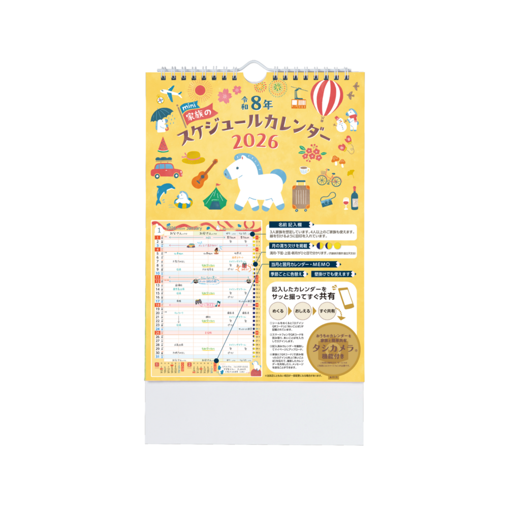 家族のスケジュールカレンダー ミニ版 2026