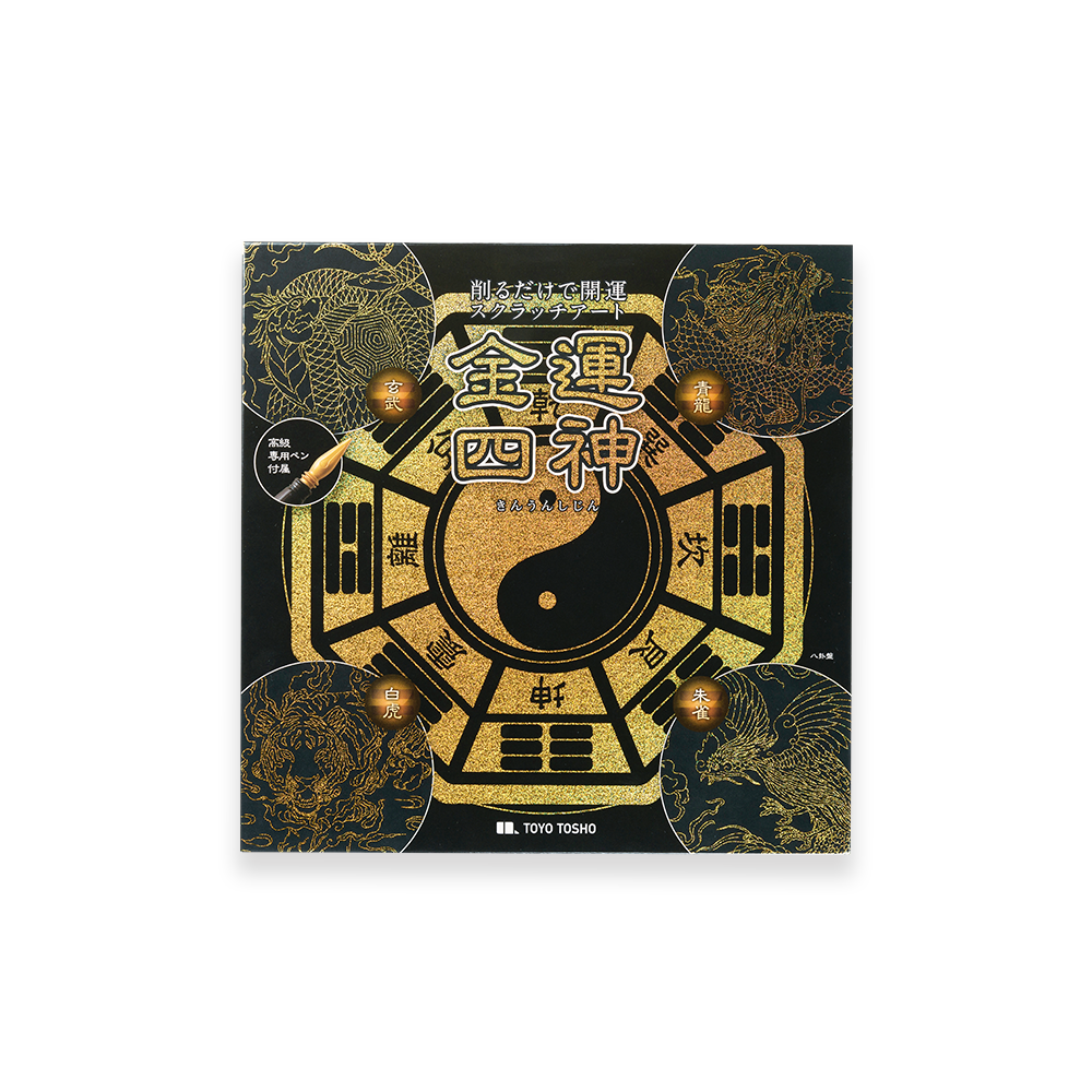 邪を祓い金運を引き寄せる四神と八卦盤が、削って楽しい飾って美しいスクラッチアートに。すぐにはじめられる専用スクラッチペン付き
