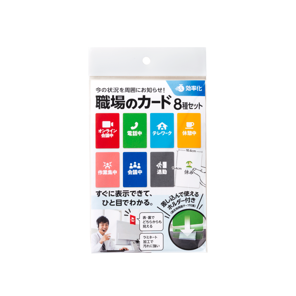 周囲に「会議中」等の状況を知らせる8種のカードセット