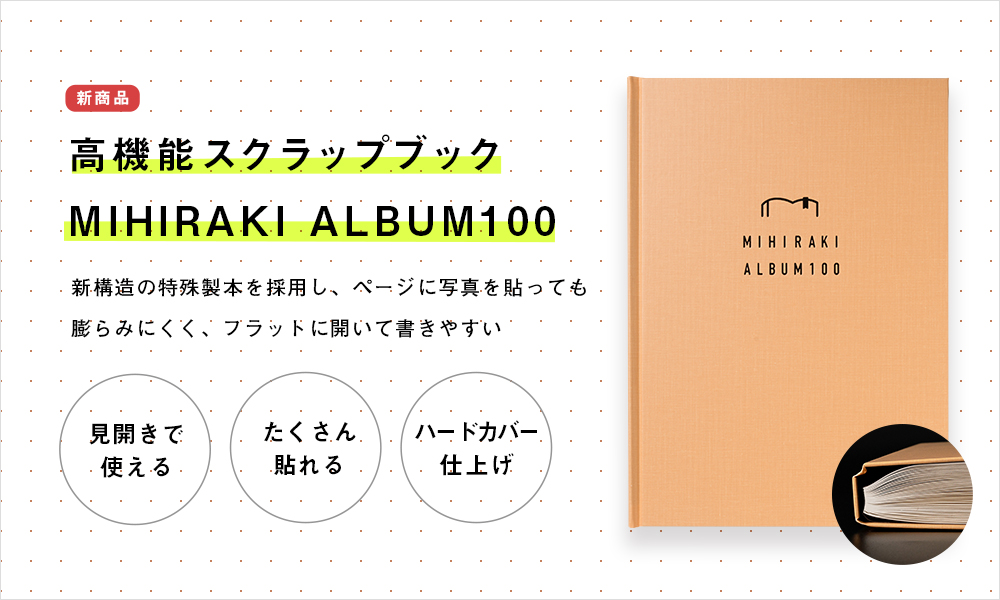 見開きいっぱいにしっかり書けてたくさん貼れる高機能スクラップブック「MIHIRAKI ALBUM100」を発売