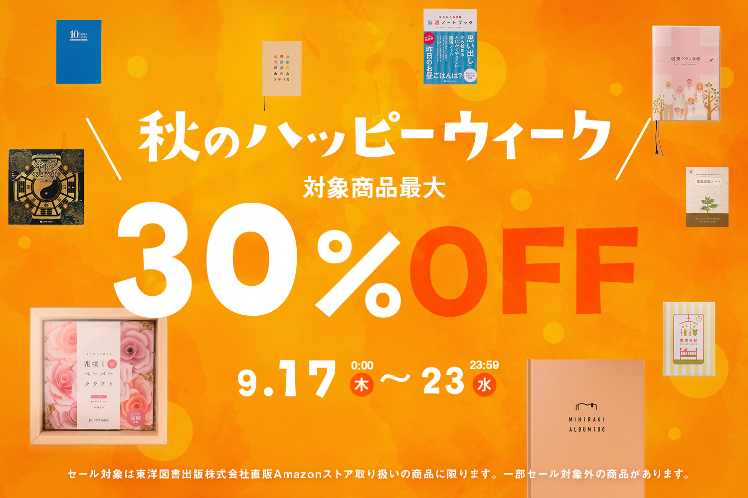 東洋図書出版では9月17日(木)0:00から9月23日(水)23:59まで、「東洋図書出版 秋のハッピーウィーク」を開催します。