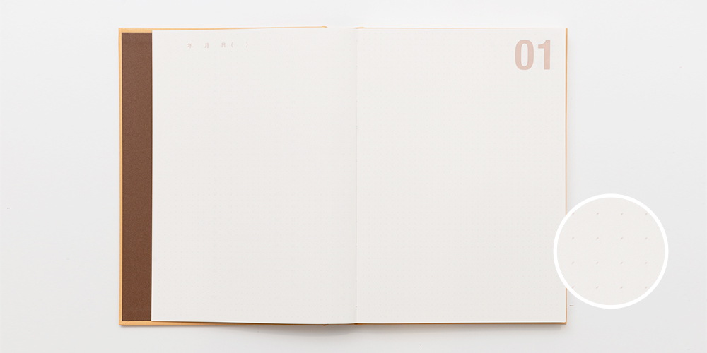 用紙には書き味なめらかで裏抜けしにくいコスモエアライトを採用。5mm間隔のドット方眼入りでイラストや文字が美しく書き込めます。